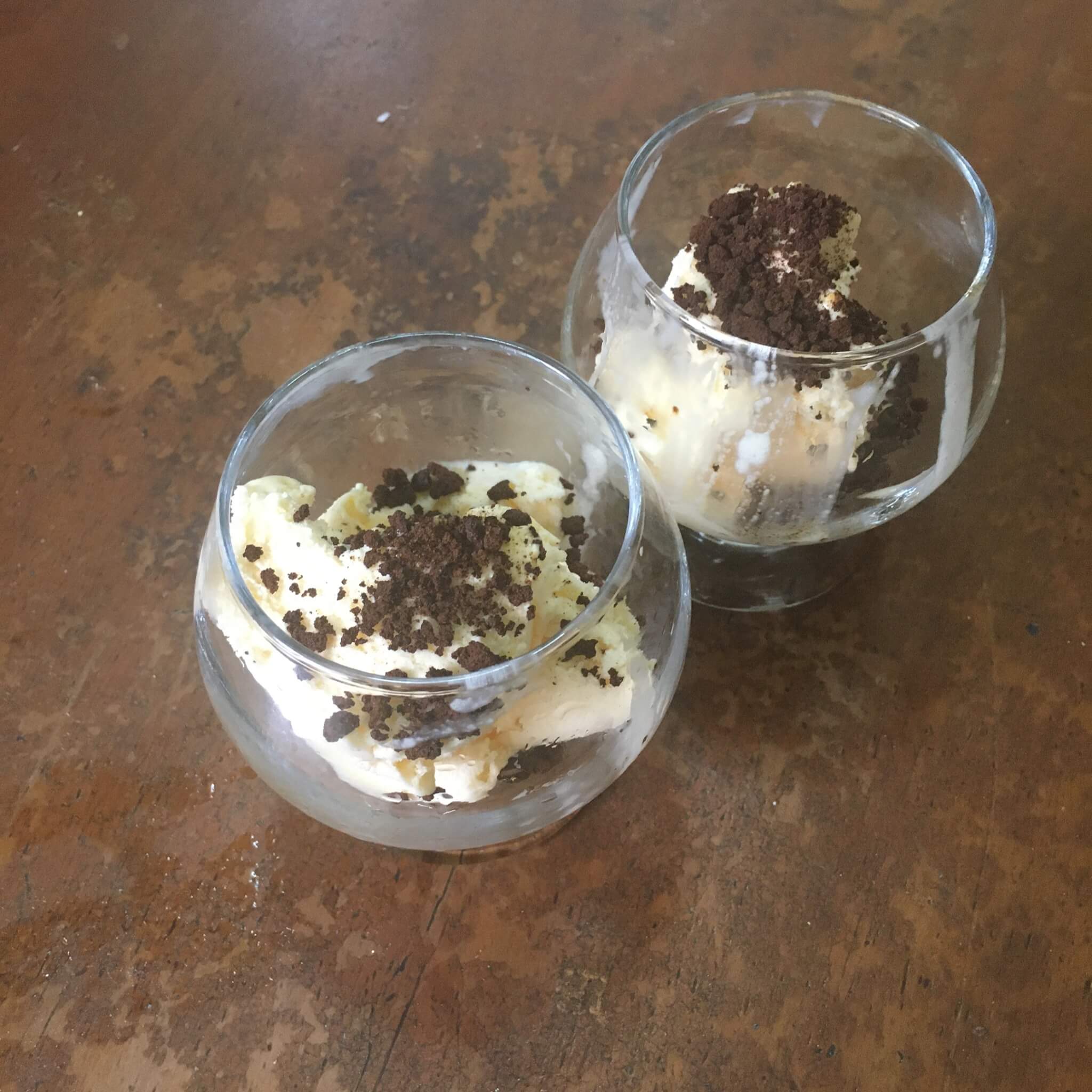 バニラアイスにインスタントコーヒーをかけただけのなんちゃってティラミスアイスです。笑