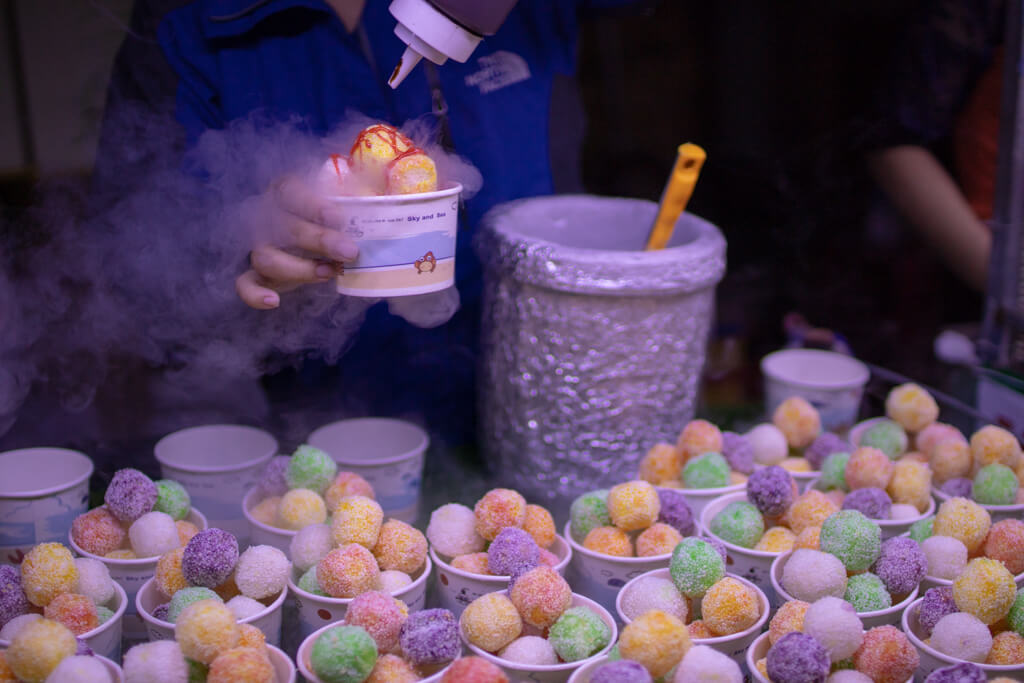 アイスではなく、あられのようなお菓子を液体窒素にくぐらせただけで特に味もせず…